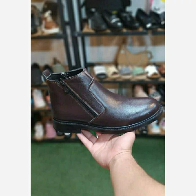 کد 171 #نیم_بوت مردانه شیک😎 رنگ #قهوه_ای تیره سایز 40 تا 44 جنس رویه چرم صنعتی/زیره پیو دو زیپ